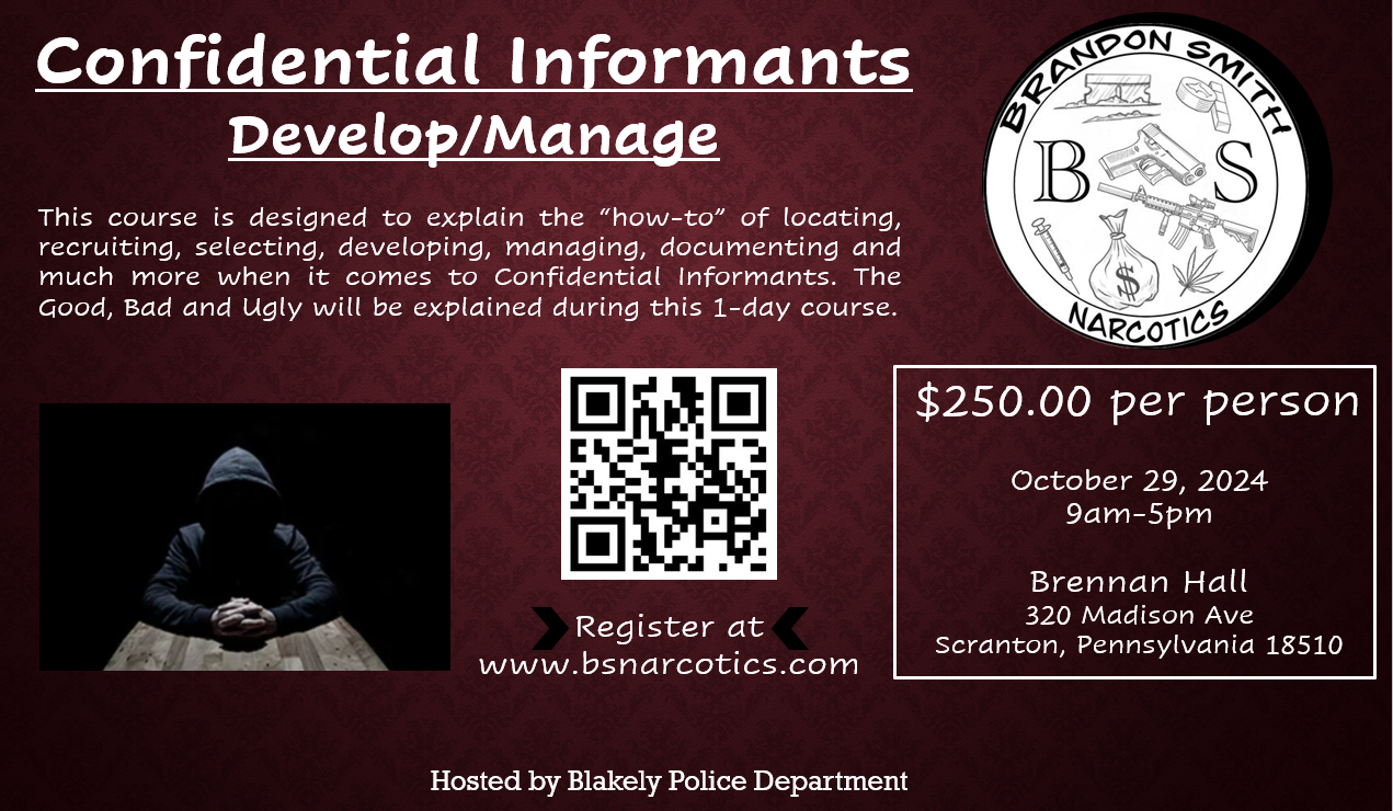 This course is designed to explain the “how-to” of locating, recruiting, selecting, developing, managing, documenting and much more when it comes to Confidential Informants. The Good, Bad and Ugly will be explained during this 1-day course.