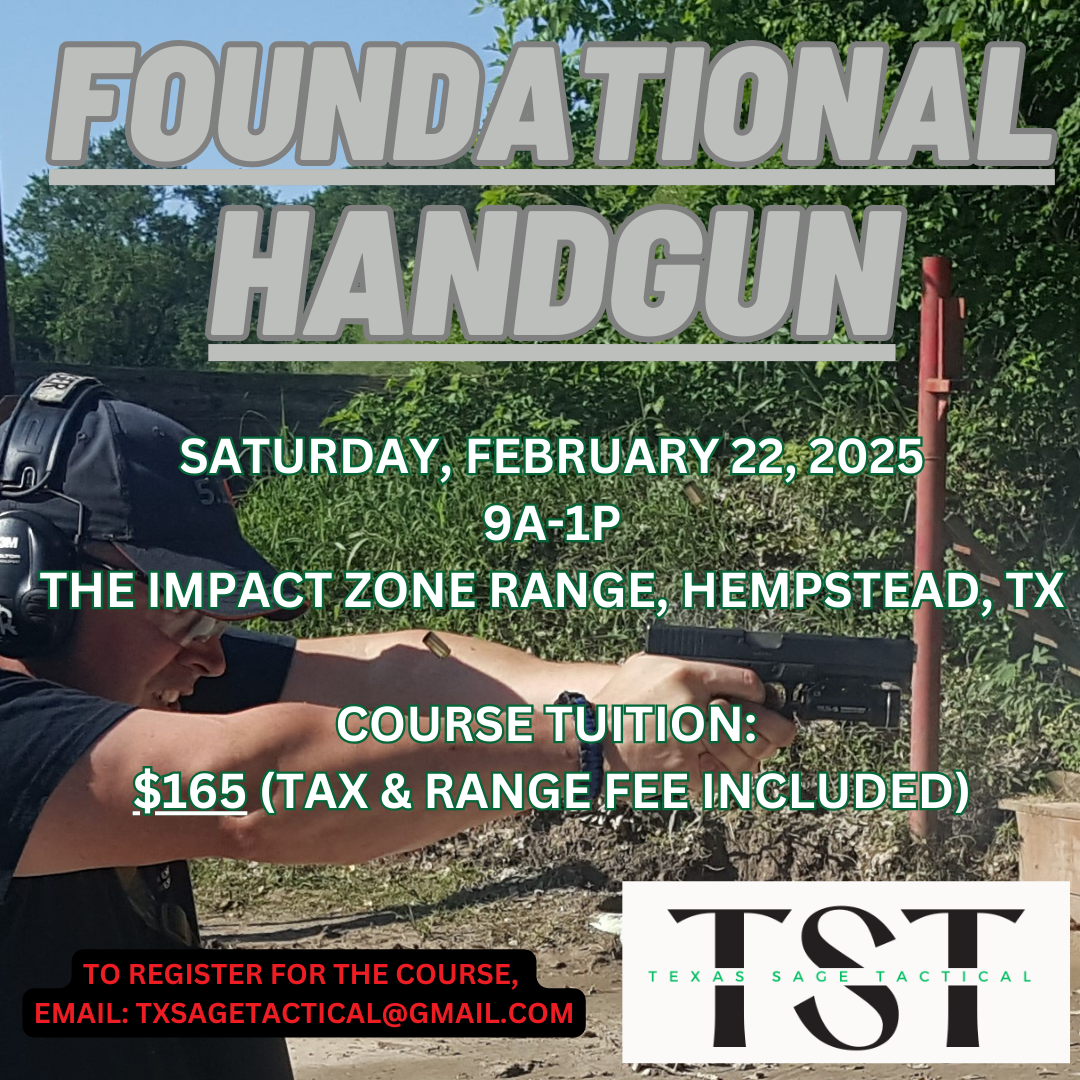We have 2 spots remaining in our upcoming Foundational Handgun course.