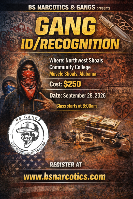 Chris "Nasty" McAnulty instructs the Gang ID/Recognition Course to assist the uniformed patrol officer, criminal/intelligence analyst, or detective/investigator with identification and/or recognition of street, hybrid, prison, and outlaw motorcycle gangs/gang members. :"Nasty" details the history and organization of gangs, legal definitions, gang identifiers (colors, symbols, hand signs, graffiti, etc.), criminal activities, documentation, and officer safety.
