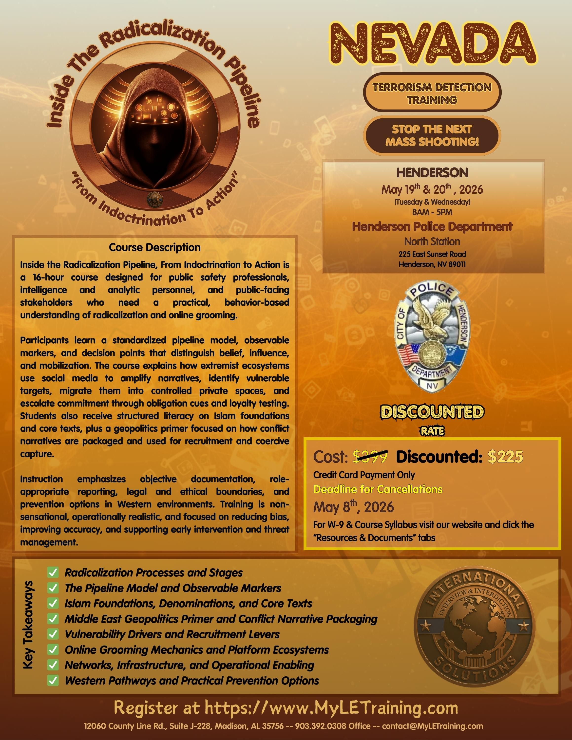 Inside the Radicalization Pipeline is a 16-hour, behavior-based course that explains how radicalization
