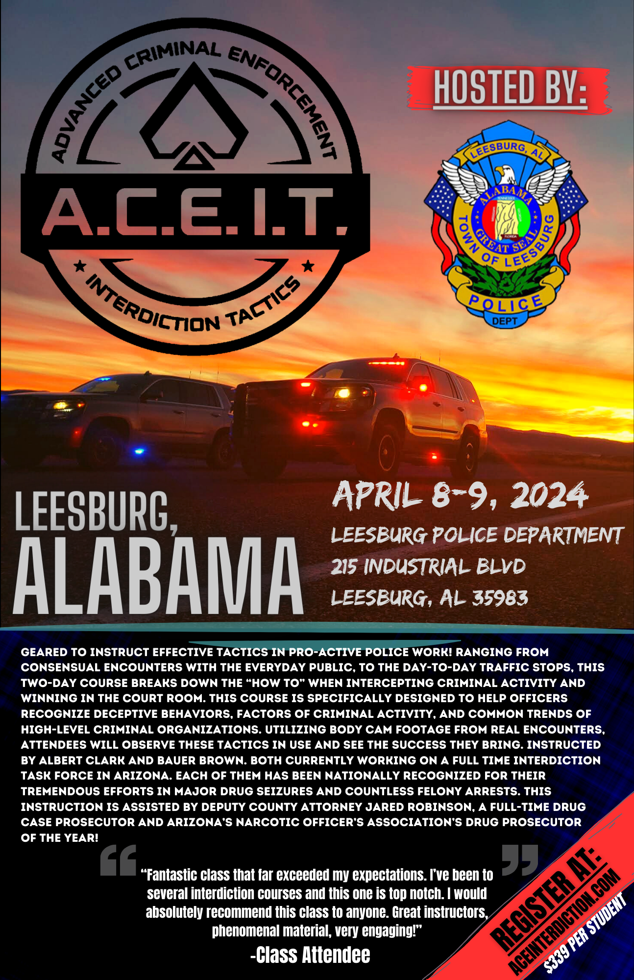 This basic level class is great for beginners and intermediate officers needing a new perspective on Interdiction.