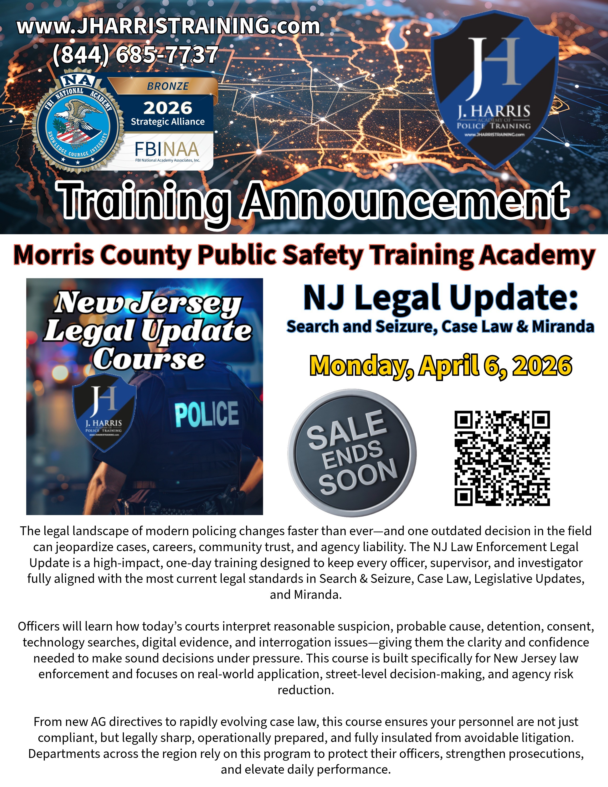In the dynamic field of law enforcement, staying updated on the latest changes in Search & Seizure, Case Law, and Miranda rights is crucial for every officer in New Jersey. These essential legal areas are continuously evolving, and keeping up with them is key to performing your duties with precision and excellence. Our comprehensive one-day course offers the latest updates from the legislature and courts, empowering you to deliver the highest standard of service to your community, insulating yourself from litigation, and maintaining your status as a law enforcement professional.