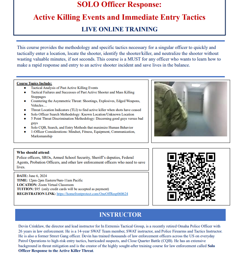 SOLO Officer Response: Active Lethal Events & Immediate Entry Tactics